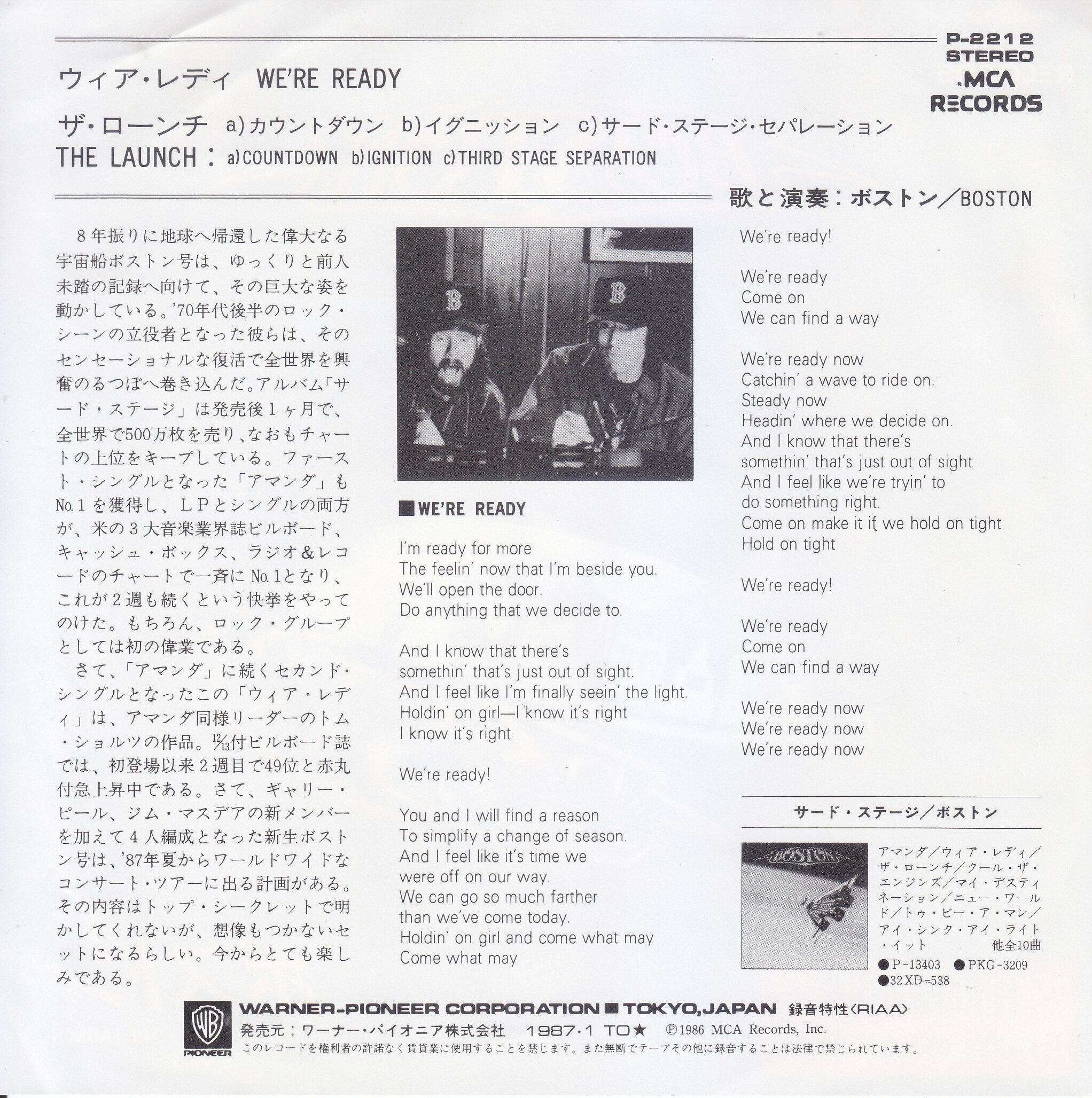 【7inch】Boston - We're Ready ウィア・レディ/ボストン (1986.11.) 45rpm